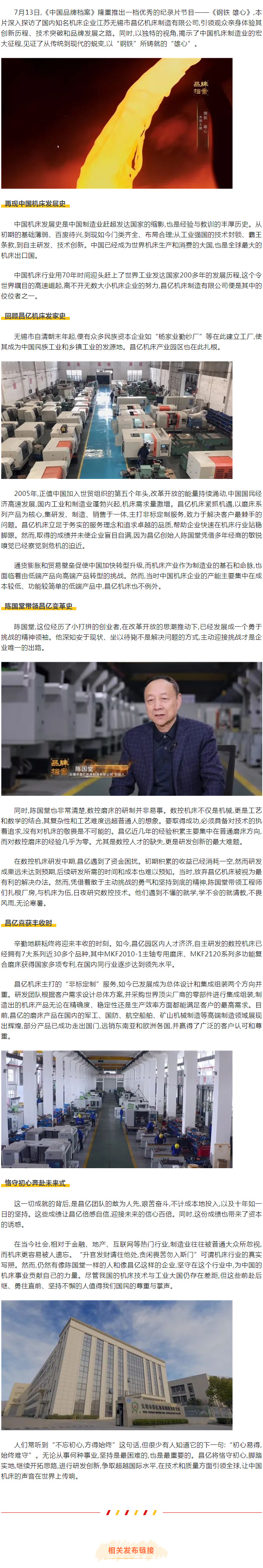 堅毅蛻變 磅礴發展《中國品牌檔案》實力展現昌億機床的鋼鐵雄心